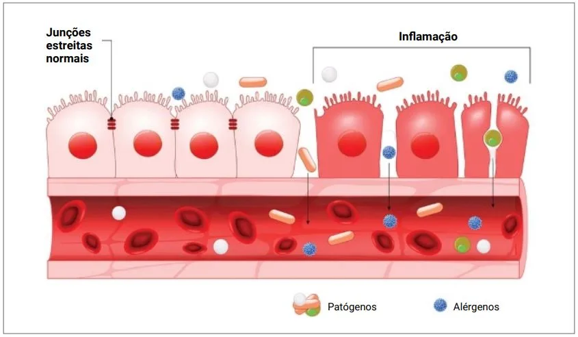 Quando a barreira natural é comprometida, as bactérias do intestino podem escapar e chegar à corrente sanguínea, e até outros órgãos, junto com as toxinas geradas por elas e seus fragmentos.4,6